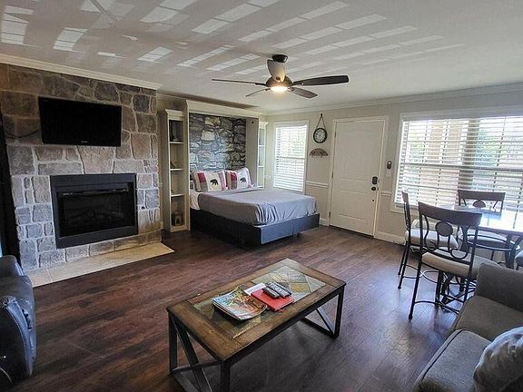Come visit Townsend and take a look at this Fantastic Studio on the River. This studio offers beautiful granite counter tops, gas fireplace and mountain views. Sold fully furnished and ready for you to begin your Smoky Mountain Adventures. The property offers Swimming pool, 300ft of River Access, Fire pit area and more. Located just steps from the Townsend walking/biking trail, minutes to the Great Smoky Mountains National Park entrance and a short drive to Maryville or Pigeon Forge.