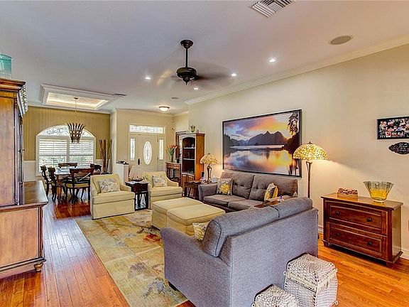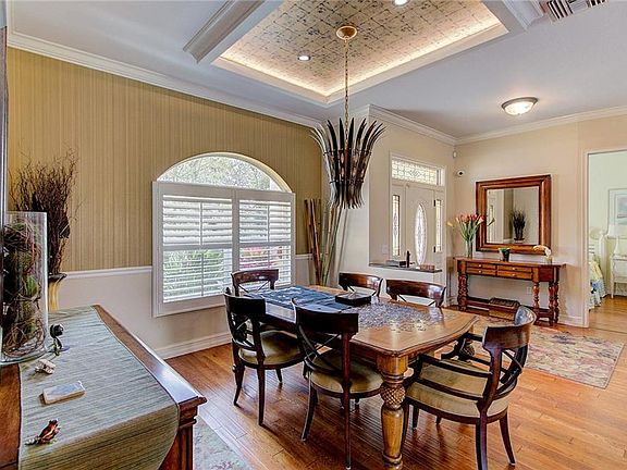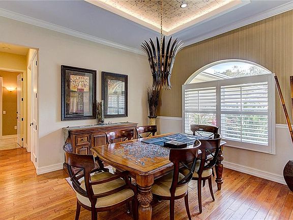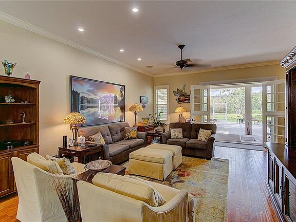 Canopied drive to a lush garden scene meticulously maintained estate home on 2 acres fronted by horse farms. Entering the home your eyes are drawn to the custom salt water deck. The open plan for the living room, dining room, kitchen and breakfast nook make for easy conversation, also open to the pool deck. 10 ft ceilings, 8 ft interior doors, recessed lighting, engineered hardwood floors set an elegant atmosphere, including plantation shutters on all windows. The kitchen, stainless Jenn-Air matching Refrigerator,Oven and new Dishwasher, a Viking Gas stove top has 4 burners, wood cabinets in a soft honey tone balance, and granite top. New washer and dryer go with the house. Master bedroom suite faces to garden, incl. a large walk in closet with a whirlpool tub, separate walk in shower, two sinks placed in granite, marble and glass block wall. Two additional bedrooms separated by an elegant bath, granite top, a tub/shower with light from a clerestory window. Garden includes lighting on all trees, view of a large Pond with aerator, a hydro stacker growing system with water and fertilizer system on automatic timers.. A Generac Whole house generator- powered by an inground 500 gallon propane tank, Pool filter, Culligan Water purification, whole house instant hot water, electric pet fence, pool cover with child safety fencing. Pool cage is aluminum. Security system has cameras both on the grounds and near the house. Cars entering the property trip a bell to alert the residence. Horses allowed