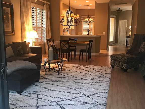 • Interior Features: Ceiling Fans(s), Eating Space In Kitchen, High Ceiling(s), Master Bedroom Downstairs, Open Floorplan, Walk-In Closet(s), Crown Molding, Living Room/Dining Room Combo, Solid Surface Counters, Window Treatments, Coffered Ceiling(s)