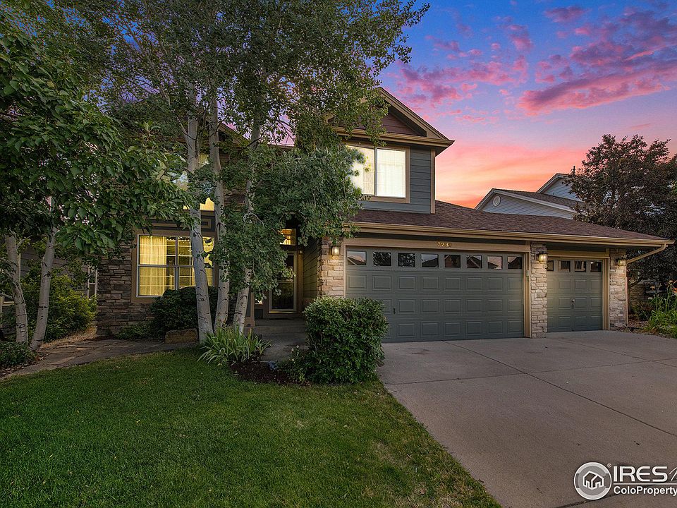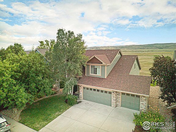 A Truly Unique Find! This stunning two-story residence with 3 car garage is nestled on a cul de sac at the back of Registry Ridge. The completely unencumbered views of the front range provide unparalleled privacy and scenic views of Coyote Ridge Natural Area. The landscaping has been beautifully designed with mature trees and well-maintained garden beds. Multiple living spaces including main floor living room and family room, basement rec room and fully furnished theatre room, and a large loft on the upper level. The interior of the home features 4 amply sized bedrooms, vaulted ceilings, a gas fireplace, hardwood floors, granite counters, and more. Don't miss the opportunity to make this exceptional property your own! Stop by the open house this weekend or Contact us directly to schedule a private showing.