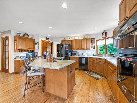 This elegant and inviting home sits on a beautifully landscaped lot and is located on a quiet tree-lined street in the heart of Littleton! The large kitchen features solid granite counter tops, gleaming hardwood floors, modern black appliances and bar stool seating for casual dining and conversation. The kitchen opens to a breakfast nook and warm family room with vaulted ceilings, gas fireplace with brick surround and large windows overlooking the backyard. Also on the main level are the formal living and dining rooms that are perfect for entertaining any size gathering and for any occasion. The second floor features the large primary bedroom and attached 5 piece bath with a jetted soaking tub, heated floors, walk-in closet and private deck to enjoy your morning coffee. The deck also connects to a convenient and well appointed home office with double doors and a closet for additional storage. Two additional bedrooms and a full bath with double sinks rounds out the second floor. The full finished basement is the perfect place to entertain friends and family or relax and have movie night! The charming kitchenette features tile counter tops, a small refrigerator, bar stool seating and don't forget the walk-in wine cellar! A conforming bedroom with multiple egress windows for great natural light and also includes a well appointed full bath with steam shower. Rounding out the basement is a large recreation area for billiards or other games, space for a large screen TV and extra storage closets. The outdoor space is equally impressive with multiple dining areas - an elevated trex deck overlooking the beautiful yard and garden and a lower stone patio complete with an outdoor kitchen for all your grilling and smoking needs! Other outdoor features include large mature trees, landscape lighting, a motorized awning, a flagstone walkway and views of the neighborhood greenbelt make this a wonderful space to enjoy all the beautiful season of Colorado.