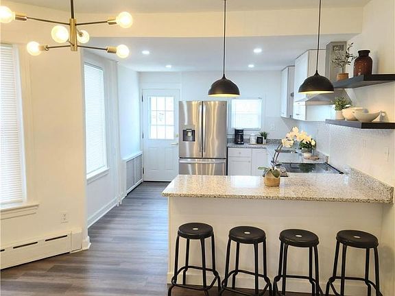 Stunning Renovations and Design. This huge 4 Bedroom home has just had a complete makeover worthy of a Home Show. Every room boasts bright natural lighting, replacement windows and the entire interior has been professionally painted with attention to detail. New laminate flooring throughout. The expansive kitchen will take your breath away with a completely new and modern design, quartz countertops with a peninsula snack bar, floating shelving, abundant cabinet space and all new, upscale fixtures. The bathroom has been completely redesigned with tastefully selected ceramic tile surfaces and all new quality, modern fixtures. Everywhere you look in this home has been thoughtfully restored and rejuvenated. The large semi finished basement could be used as extra playroom or project space. Other notables include a new heating system, new hot water heater and upgraded electric. Enjoy the outdoor seasons with grilling and play space, a fenced rear yard, off street parking, a large, covered front porch, new landscaping and so much more await your discovery. Located in a great area on a tree lined block of well maintained homes on a quiet street. LOW TAXES!