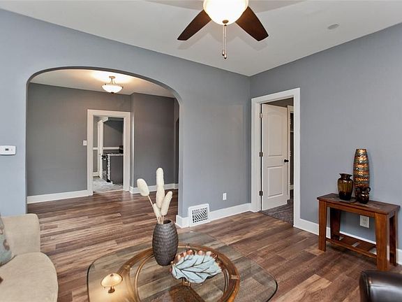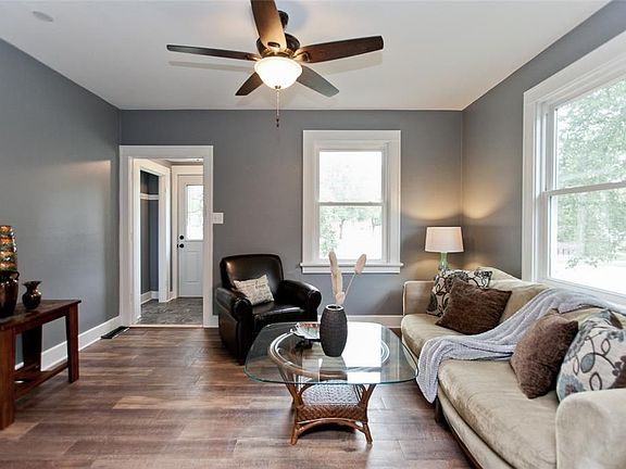 Beautifully updated home is super sharp, clean as a whistle, and move-in ready. New windows, all new flooring and carpeting, fresh paint throughout, new fixtures and hardware, new kitchen - cabinets with soft close drawers, new countertops, new sink, new refrigerator and range, new windows. 3rd bedroom or bonus room upstairs features vaulted ceiling and plenty of space.