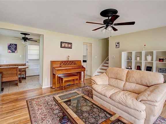 Welcome home to this conveniently located 3 bed, 1 bath split-level! Walk in your front door and be greeted by flowing hardwood floors in your living room that features large windows and a fireplace. Head into your fully functional eat-in kitchen before journeying upstairs to see the bedrooms and bathroom. The hardwood floors continue upstairs in each of the three well-sized bedrooms with functional closet space throughout. Stop by the full bathroom before heading down to the partially finished basement with plenty of extra space for storage and access to the attached garage. Don't forget to spend a little time outside exploring your back deck and level yard - get ready to entertain this summer!
