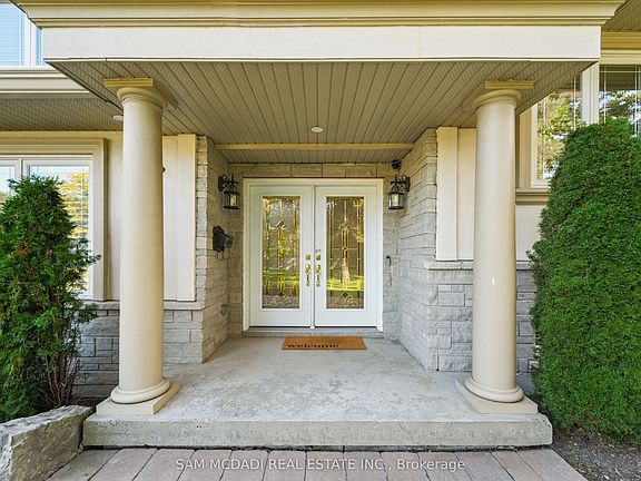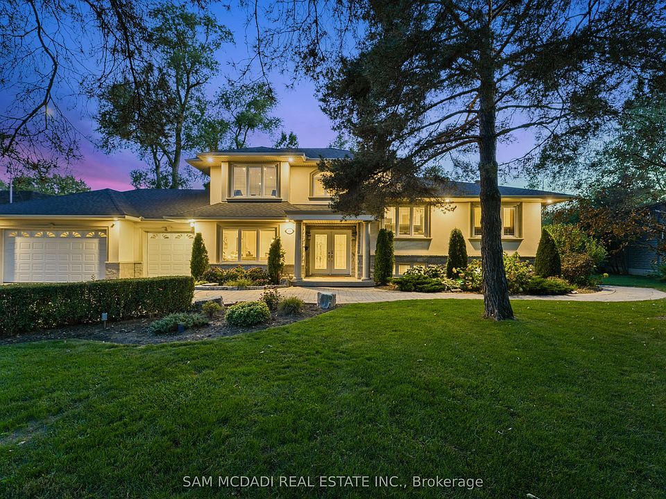 Welcome to 724 Atoka Drive, a rare offering in prestigious Lorne Park, tucked quietly at the end of a private cul-de-sac. This residence boasts nearly 4500 SF and rests on a sprawling half-acre lot with a landscaped pond, cascading water feature, and multiple outdoor living zones designed for both entertaining and quiet retreat. As you enter, soaring 9' - 15' ceilings and oversized windows flood the home with natural light. The main floor features formal living and dining rooms with rich hardwood floors, a cozy family room with gas fireplace and vaulted ceilings, a bright home office, and a gourmet granite kitchen with stainless steel appliances, custom cabinetry, and an expansive island, perfect for hosting or everyday living.Above, four spacious bedrooms await, including a luxurious primary retreat with pot lights, large walk-in closet, and a spa-inspired ensuite featuring heated floors, dual vanities, glass shower, and a freestanding tub. The three additional bedrooms include ensuite / semi-ensuite access and ample closets, promising privacy and comfort.The finished lower level provides a versatile rec room, fitness area, and a private bedroom with ensuite ideal for guests, in-laws, or teens and a separate entrance.Outdoors, enjoy a covered patio, fire pit lounge, hot tub cabana, and open lawns where children can play. The tranquil pond and mature trees create a private, resort-like atmosphere. Yet, just minutes away are the winding trails of Rattray Marsh, lakeside sunsets at Jack Darling Park, boutique dining in Port Credit Village, and quick QEW/GO access for effortless downtown commute.