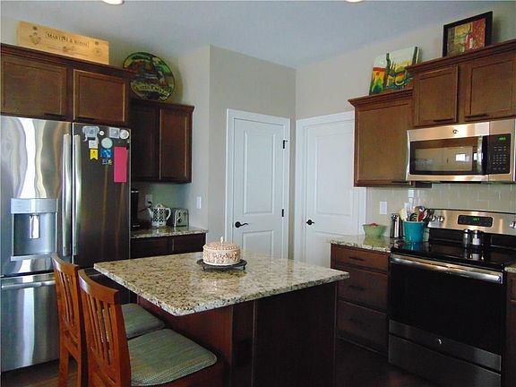 Better than new! $ 5,000 upgrades added including blinds, storm door. Walk out ranch townhome with over 2250 s.f. finished space! Open concept with granite counters, tile backsplash and stainless steel appliances. Large main level family room with floor to ceiling stone fireplace and patio door to deck. Master bedroom has master bath with granite double vanity, 5 foot walk in shower, linen closet and walk thru to master closet. Finished walkout lower level includes huge family room, bedroom and 3/4 bath.