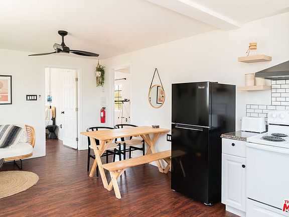 Turnkey modern expanded homestead cabin! Ready for you to drop your bags and move right in to your desert retreat. Successful AirBnB -- and easy to see why. Begin each morning with a delicious cup of coffee while lounging in the golden morning light pouring into the fully updated kitchen. Featuring 2 bedrooms, 1 bathroom, + a yoga / utility room with washer/dryer hookups. Extensive renovations (2019) include fresh paint inside and out, granite counters, and all new: heater and swamp cooler, water heater, dual pane windows, and septic system. This home features designer fixtures and finishings throughout including all new 200 amp panel, new ceiling fans, Emtek smart door lock with August technology and Ring camera doorbell. Roof updated in 2021. Situated on 2.5 acres with over a dozen Joshua trees, the entire property is fully fenced and cross-fenced. Relax in the backyard by the gas fire pit and take in the magical sunsets and views of Goat Mountain and the San Gorgonio Mountain. Only a short 5 minute drive to famed La Copine, Giant Rock Cafe, and the Integratron, this home is located near some of the high deserts best restaurants and attractions. Can be delivered furnished. Begin your high desert escape (or start your AirBnB empire) today! Back on market due to Buyer's failure to perform.