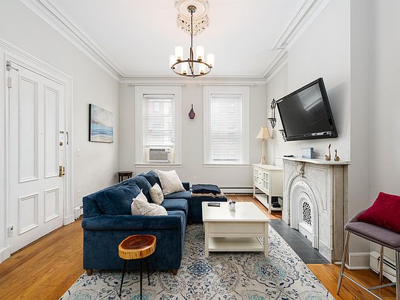 Cozy and quiet, beautifully renovated one bedroom/one bathroom parlor level condo on Hoboken's tree lined and most desirable Bloomfield Street. This sun drenched condo with large east facing windows is located in the center of town near Steven's University, bus stop, ferry to NY, the Path Train, and on block from plenty of shopping and nightlife on the main drag Washington Street. This home features two decorative fireplaces, stainless steel appliances, hardwood floors, a $20,000 bathroom with a washer and dryer. Move right in or explore this unit as an investment property. This unit as a STR rental has earned more than $5000 after management per month. Agents please read the showing instructions in detail