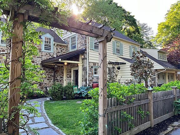 Walk to Narberth from this lovely Merion stone colonial. Warm and inviting, this home features charming architectural details including many built-ins, deep windowsills and random width, pegged, hardwood floors. Main level: antique brick Foyer; turned staircase; spacious Living Room with fireplace; formal Dining Room with handsome three quarter wall wainscoting, French doors to family room, built-in storage; Family Room with slate floor, stone walls, built-ins and access to patio; eat-in Kitchen with generous cabinetry and counter space: powder room and coat closet. Second level: Master Bedroom with arched windows, newer Bath and good closet space; 2nd bedroom; new hall Bath; Bedrooms 3 & 4 share a Bath. Attic: finished Closet Room plus lots of space for storage. Lower level: Rec Room, Laundry Room, Workshop/Storage and Powder Room. Large lot for recreation and entertainment. Two car attached garage. Ideal location; close to schools, shopping and R5 train to Center City, universities and hospitals.