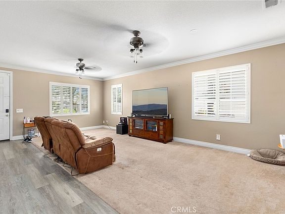 Welcome to this stunning home located in the prestigious Three Rings Ranch community, offering luxurious amenities and modern upgrades with low taxes and no HOA. This meticulously maintained property boasts paid-off solar panels, a water softener and filtration system, and a tankless water heater for maximum efficiency and comfort. Upon entering, you'll be greeted by the elegance of plantation shutters and crown molding throughout the home. The spacious living areas and rooms feature ceiling fans for added comfort, and the kitchen is a chef's dream with a smart stove, stainless steel built-in air fryer, and a stainless-steel microwave. The kitchen and bathrooms have upgraded faucets, providing a touch of sophistication. The home also features a gas fireplace, a smart Nest thermostat, and extra cabinets in the hallway and laundry room for ample storage. Step outside to your private oasis with a spa and the salt and chlorine pool, complete with a newer heater, pump, filters, and a saltwater cell. The backyard is enclosed with vinyl fencing and includes a patio cover with ceiling fans and a TV, perfect for outdoor entertaining. The moveable pool fence adds an extra layer of safety for families. Additional highlights include RV parking potential, a three-car garage, and an abundance of cabinets in the kitchen for all your storage needs. This home is a true gem in a sought-after community, offering both luxury and practicality. Don't miss the opportunity to make this exceptional property your own!