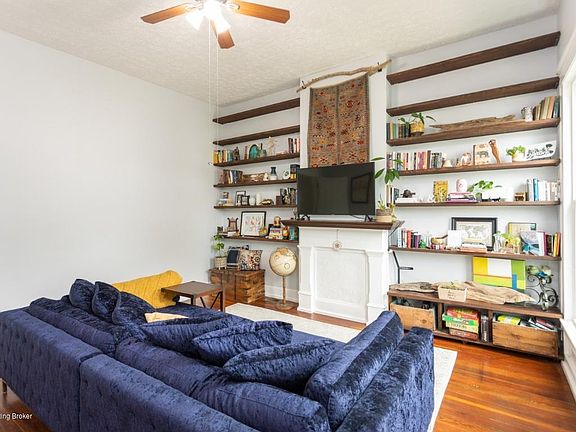 Welcome to the heart of Shelby Park. This charming, turn-of-the century camelback has all the great features of its period: large first-floor rooms, high ceilings, original wood floors and loads of character. It has also been updated in ways that you don't find everyday: replacement windows (2018), new roof on house and garage (2018), re-paired foundation (2019) and landscape (2020). The first-floor living room features a decorative fireplace flanked by an impressive wall of shelves that remain with the house. The second room, currently used as a dining room, can be used as a first-floor bedroom with its closet and adjacent bathroom. The bath-room has a single sink, commode and step-in shower. The unusually large eat-in kitchen is situated at the rear of the house and has plenty of room for a table and even the washer and dryer. All the kitchen appliances, including the gas range, remain with the house. The staircase to the second floor is located off the kitchen and leads to two upstairs rooms with wood floors and high ceilings. Each room has a closet and the second room is accessed from the first, lending itself nicely to serving as a home office, nursery or hobby room. The back door from the kitchen opens to a covered patio area and privacy-fenced yard with updated landscape and path to the 2-car detached garage, definitely RARE for the neighborhood. Located within walking distance of all the restaurants and nightlife of Shelby Park, Schnitzelburg, Germantown and Logan Street Market. Don't miss your chance to make this awesome and historic house your home!