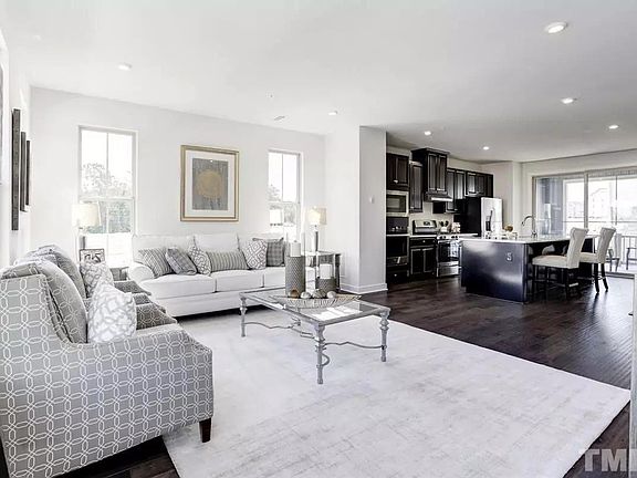End Unit Townhome featuring outdoor fireplace on covered deck with tree lined backyard views in prime West Cary Location across from Panther Creek High School. Close to Whole Foods, Parkside Town Commons & much more! The Serenade features 2-car garage & 1st floor guest BR. An open floor plan connecting great rm & gourmet w/large island. 3 BRs up including Owner's bedroom w/tray ceiling & en-suite bathroom.