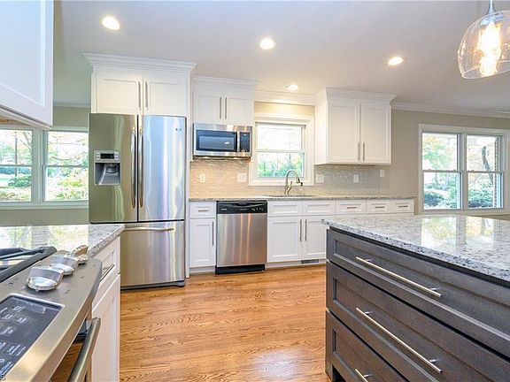 Beautifully renovated ranch in Sherwood Forest w/4BR & 4BA. Open concept to all the living areas, LR w/window seat & built-ins, kitchen boasts new cabinets, new appliances incl gas range, granite counters & large island. Lovely hardwood floors on ML. Dining room has FP & opens to screen porch & deck overlooking wooded level back yard. 4 gorgeous baths w/new vanities, lighting, tile etc. Finished walkout bsmt w/4th BR & BA. Unfshd space for wrkshp, storage, & lrg laundry area. Desirable schools & location!