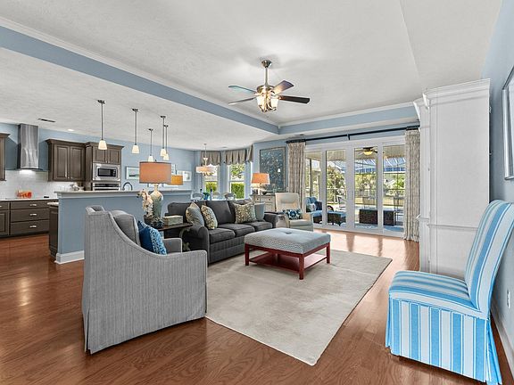 Welcome to this beautifully maintained, all-brick custom home nestled in the prestigious gated community of Covington Lake East. The highly desirable split-bedroom floor plan ensures privacy for the owner’s suite, while the open main living area, highlighted by a stunning tray ceiling, creates an inviting and spacious feel. Rich hardwood floors flow throughout, leading to a gourmet kitchen equipped with quartz countertops, built-in appliances, a stainless steel hood, under-cabinet lighting, and plantation shutters that adorn the entire home. Step outside into your private backyard oasis, where the centerpiece is a stunning saltwater pool—perfect for both relaxation and entertaining. Enjoy the serene view of the pond as you unwind by the pool. The upgraded French sliding doors lead to a covered, screened-in porch with the innovative Easy Breeze system, providing a seamless transition between indoor and outdoor living. Extend your outdoor enjoyment with the Sun Setter electric awning, complete with wind protection, making it easy to enjoy the beautiful outdoor space year-round. The owner’s suite, set apart for privacy in the split-bedroom layout, boasts a tray ceiling with crown molding, custom closets, and an ensuite bath with a beautifully tiled shower and built-in bench. This home is designed for easy living with hurricane shutters, a whole-house Halo water filtration system, and a built-in irrigation system. Enjoy the ultimate in convenience with an electric lift for easy access to attic storage, a fully epoxied garage floor, and an organized workspace in the garage featuring a built-in sink, electric garage screen, and side door. A side walkway provides added accessibility around the property. From the scenic pond views to the luxurious saltwater pool and every modern convenience, this home offers the ultimate in relaxation and upscale living. Don’t miss your chance to call this stunning property your own!
