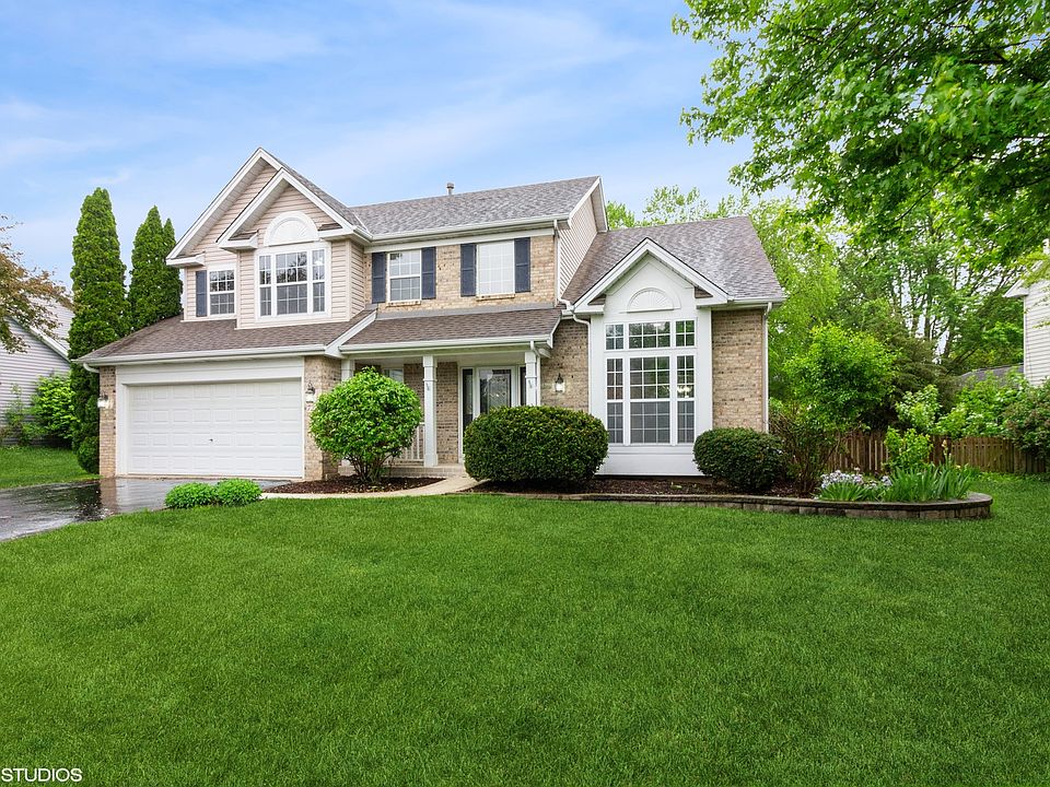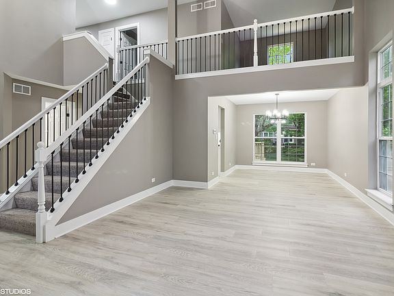 Beautifully renovated Two-Story Home with Bonus Loft and Brand-New Deck! Located in a sought-after community, this 3BR/2.5BA residence enchants with gorgeous exterior brick accents, professional landscaping, and beautiful mature trees. Completely remodeled from top-to-bottom, the professionally painted interior features vaulted ceilings, modern luxury laminate floors (1st level), custom staircase with wrought iron spindles, elegant built-ins, and an eat-in gourmet kitchen with brand-new stainless-steel Samsung appliances, quartz counters, and custom cabinets. Ideal for entertaining, the fenced-in backyard delights with a huge brand-new deck and greenspace. Restfully relax in the oversized primary bedroom, which has a walk-in closet and amazing en suite. Two additional bedrooms wonderfully accommodate, while the large loft overlooking the living area provides desirable flex space. Other features: 2-car garage, laundry area, near shops, schools, and parks, and more! Owner is IL licensed Realtor.