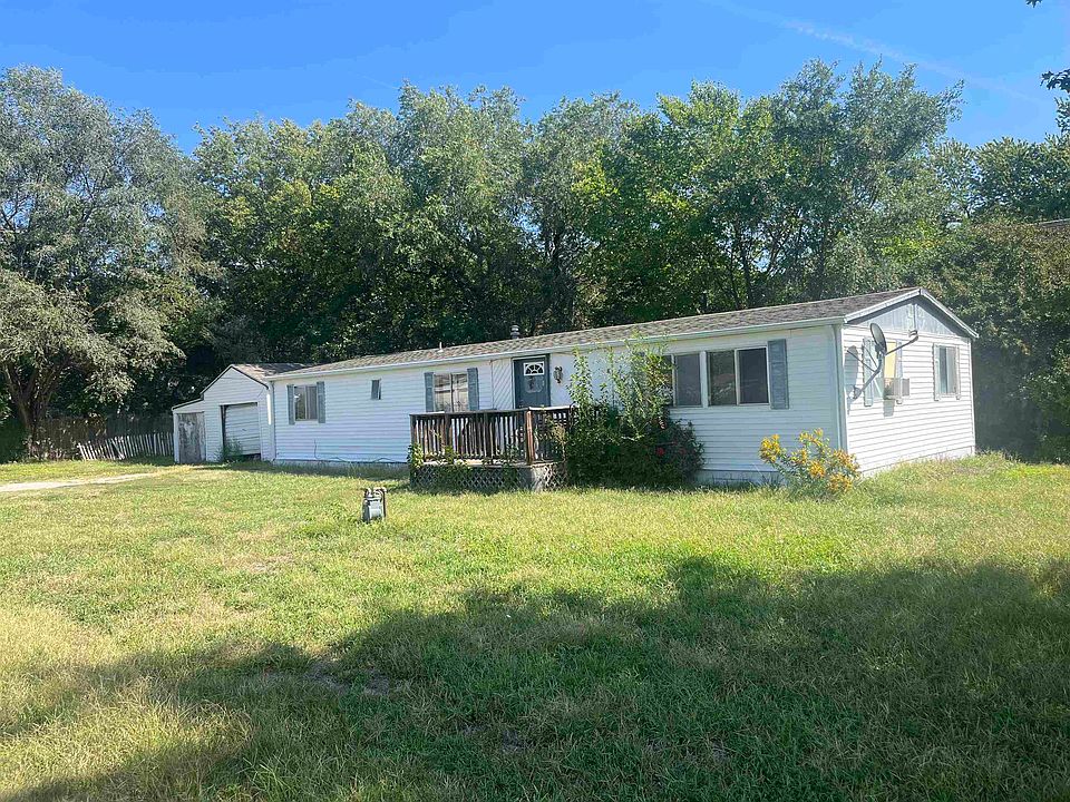 Corner lot right down the street from the park. Large double-wide with a front deck. 3 spacious bedrooms with 2 baths. Large eat-in kitchen. Main floor laundry.