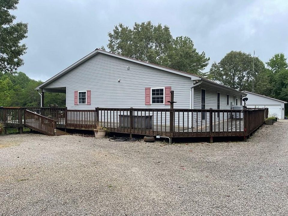 Your paradise awaits. This one level 1664 sq ft 3 BR home with 2 BA has a wrap around porch is move in ready. Home boasts of fresh new paint, mostly hardwood flooring and open living/dining area. Property has tons of wildlife for hunting, features a shooting range, deer stands and a large spring fed 2 acre private lake (16'deep) with 3 docks. Bunk house on property is 15X25 features an additional 1 BR 1BA with a 3 year old split HVAC system with hot tub. Property also has a separate water meter and septic system in place for a future residence (at the road). All kitchen appliances stay including washer and dryer. Acreage is 27 acres +/- . Don't let this little piece of heaven get away.