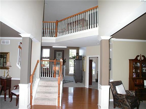 Exceptional home in a great community. As soon as you enter into the soaring 2 story foyer you will know this is the home for you. Owners put in over $80,000 of upgrades during construction 10 years ago. Some of the extras include a 4' addition to the family room, sunroom, 2' addition to the kitchen, stone front, expanded hardwoods and the optional master bath with whirlpool tub. You will love the open floorplan on the main level with 2 story family room, living room, formal dining room, office and eat-in kitchen open to the sunroom with cathedral ceiling. The second floor features the spacious master bedroom with expanded walk-in closet, 4 piece master bath, 3 additional bedrooms and hall bath. The basement has a den, theater room, work-out area and still has plenty of storage area. Outside is a hardscape patio and yard bordering part of the community open space. Central air conditioning system was replaced this year. Bring your checkbook because you will want to immediately buy this great home.