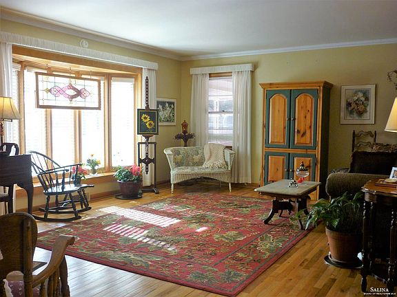 This gracious Goodland, Kansas home is warm and welcoming throughout! Designed to live large but easy to maintain, the spectacular corner location creates an impressive approach with an elegant circle drive and veranda for meeting and entertaining friends and family. Gleaming wood floors greet the eyes, and abundant sunlight from both southern and northern exposures highlights the fine lines in this updated 1951 design. The mid century architecture utilizes every inch of floor space, boasting an array of built ins, closets and clever bonus spaces. Contemporary touches like a modernized kitchen with appliances, refurbished main bath with onyx fixtures, and an artist's eye for appropriate color choices and artistic design elements make for classic, chic living--long into the future. A private courtyard-style backyard accessorizes the indoor living, and underground sprinklers and a wealth of perennials and mature shrubbery give year round landscape appeal and superior curb presence!