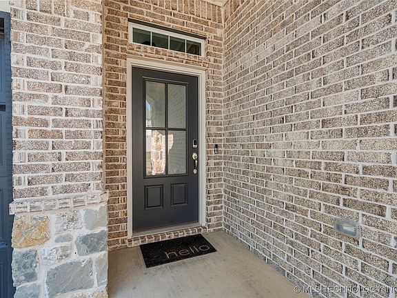 Spacious, single story home in Jenks! Design elements including wood floors, quartz countertops, & accents make this home pop! The natural light is stunning throughout the 2,220 square foot floor plan. A cozy fireplace with sconces & light wood floors create the perfect setting in this living room. Entertain in this stunning kitchen that opens to the living room & dining room. Refrigerator is included with the sale of the property. Relax in the primary suite boasting oversized windows, a huge walk-in closet, freestanding bathtub & separate shower. This home is functionally layed out as a 3 bedroom, plus an office/flex room. Escape to the backyard patio surrounded by a full privacy fence. The 3-car garage includes an in-ground storm shelter. The property is ideally located within walking distance from a community playground and stocked ponds. Enjoy the neighborhood's iconic pool, trails, pickleball & basketball courts & sports fields. Relax or play in Yorktown's vibrant community with all the essential amenities, events, and social groups.