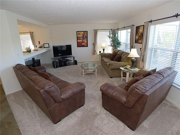 Beautiful fully furnished 4-bedroom 3-bathroom pool home with upgrades throughout. Heated pool with large back yard and mature landscaping. Granite countertops throughout the home. Games room and loft area for added entertainment space. Formal living and dining room. Very spacious master bedroom with large walk in closet. Upgraded master bathroom with dual dinks, tub & separate shower stall. This beautiful home is zoned for short term rentals allowing use as a vacation home or as a primary residence. Just minutes from restaurants, grocery stores, golf courses & major highways including I-4.