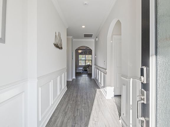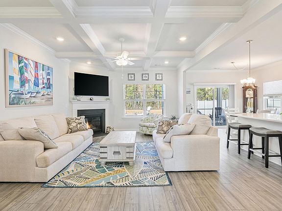 Welcome to your dream home in the new, vibrant Arcadia neighborhood! This exquisite single-family residence offers three spacious bedrooms and two full bathrooms, all situated on an expansive 0.26-acre wooded lot that provides both privacy and a serene natural backdrop. As you enter, you'll be captivated by the family room's coffered ceiling, enhanced by upgraded molding and judge's panels, creating an atmosphere of refined elegance. The luxury vinyl plank (LVP) flooring throughout adds a touch of modern sophistication and durability. The heart of the home—the kitchen—is a chef's delight, featuring gleaming quartz countertops, a stylish subway tile backsplash, and top-of-the-line GE Profile stainless steel appliances including a gas top range and electric oven. This space seamlessly blends functionality with contemporary design, making it perfect for both everyday living and entertaining. Step outside to the covered screened patio, an ideal spot for morning coffee or evening relaxation. The expansive backyard is designed for entertaining, complete with a firepit connected by a concrete walkway and ample seating space, all set against a backdrop of mature trees that offer tranquility and shade. This home combines luxury, comfort, and modern amenities, making it the perfect haven for those seeking a harmonious blend of indoor and outdoor living in a dynamic community. The Arcadia community features tremendous amenities including a community swimming pool with spacious pool deck and oversized awnings, four pickleball only courts, playground, recreation facilities and plenty of adjacent greenspace. Arcadia is also conveniently located near Hwy 544 and Hwy 31 which provides access to retail, dining, attractions, golf courses and beaches. Schedule your showing today!