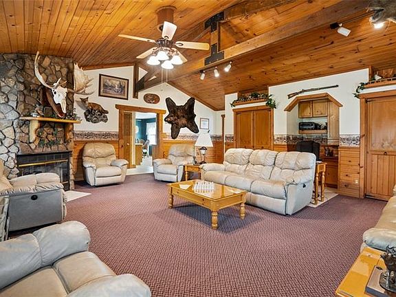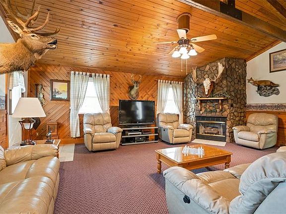 With plentiful solid woodworking bordering throughout its spacious, interior layers, this raised ranch home presents valuable renovations and impeccable quality in a space that truly has a definitive "Wow!" factor. Center your eyes on the knotted pine enhanced family room with its soaring vaulted ceiling and expansive center truss beam which embraces a massive stone fireplace and is sure to become your get-away sanctuary. Other family spaces summon you to pull up a chair in the dining and/or living areas. Just steps away from the dining area is an intimate kitchen providing solid oak Kraftmaid cabinetry. An owner bedroom caters to your need for privacy with its en-suite partial bath. Finished basement surrounded in a Smartpanel wall finishing system and including a brick propane fireplace and tons of space for grand-size gatherings. Naturestone in laundry room and garage area.. Sunroom leading to an outdoor composite deck and overlooking landscaping that is also easy to maintain.