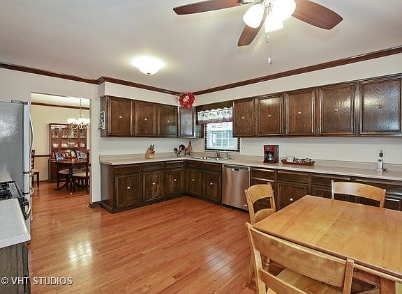 Excellent Cul-De-Sac location! Hard to find walk-out ranch with full finished basement in beautiful Gaslight subdivision. Great wooded yard offers private fire-pit area. Main floor features 2 sided fireplace for Living & Family rooms. Spacious formal dining room & eat-in kitchen have beautiful hardwood floors. Kitchen boasts newer SS appliances & access to large deck overlooking beautiful yard. Lower level features full bath with an incredible recreation room & bar area, perfect for all your entertaining needs. There is also an office as well as plenty of storage space. Recent updates include: master bathroom, roof, tuckpointing & carpet. Bring your decorating ideas, seller offering $2,000 credit towards your updates.