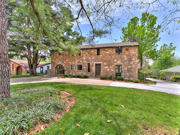 Looking for some historical significance and and an impeccable re-design close to the University of Oklahoma? Here is a restoration at its finest. In 1940, Harold Gemino was the engineer for this one of a kind original Spanish Revival home. Brent Swift Designs brought this back to its deserved showcase home feel with Calumet Stone for the exterior cladding, deep set steel frame windows anchored at top and bottom with smooth cast concrete lintels and window sills. Large, dark wood ceilings flow throughout different areas of the home to boast the stucco white walls and sleek lines and trim. Discovered original hardwood floors compliment the feel of history and classic design. The parquet patterned oak floor flows to the soapstone fireplace hearth to give you a beautiful centerpiece to your living area. Custom designed and handmade front door is 4 layers of maple with iron bolting for a significant entrance piece! Can be 3 bed, 2 & study, nursery, or upper level living. Classic beauty. Call Realtor Randi @ 405-345-6776