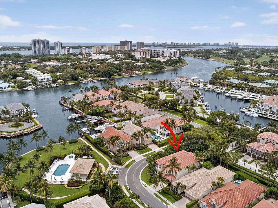 Welcome to 724 Maritime Way. A hidden gem in the waterfront community of Prosperity Harbor North. Prime Location plus the security of a Gated Community. Boasting community Day Docks offering access to the Atlantic with no fixed bridges. Enjoy the finest waterfront living without the waterfront price! This wonderful 5 bedroom, 4 bath home with over 5,000 total square feet offers a rare opportunity to own in a sought after neighborhood at an incredible value. Highlights include Striking two story ceilings in the dining and living rooms providing the grandeur of vertical space. Dedicated Office with built in storage and shelving. Gourmet Kitchen with gas range, double convection ovens, granite countertops and breakfast nook. Luxurious Primary Suite with stunning wood flooring. Outdoor oasis with tropical landscaping, covered lanai, and heated saltwater pool. Corner lot just steps away from the community pool and Day Docks.