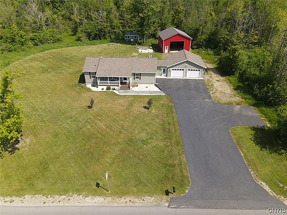 Built in 2017, this ranch style home offers more than expected for its 1,380 square feet. 3 bedrooms, 2 full baths and a cohesive layout make this house a no-brainer. The attached two-car garage and heated breezeway add convenience for all seasons. The sprawling basement with Superior poured walls can be easily finished to add even more living space. Rural living with gas service and city water makes it the best of both worlds! Wait until you see the 30' x 30' pole barn with 100 amp electrical service to hold all of your recreation vehicles to take advantage of over 15 acres of land. Oswego School District with Scriba taxes!