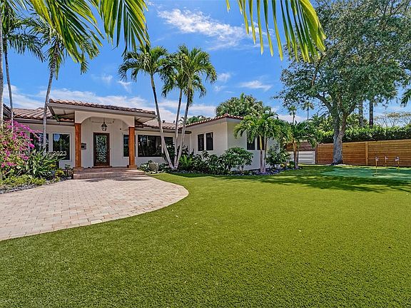 A pristinely located estate w/large private paradise wraps entire property. Interior boasts refinished white oak wood floors and recessed lighting throughout. Chef’s kitchen w/slow-close Italian cabinets, quartzite counters, JennAir appliances + bar. Family room w/travertine marble gas fireplace! Master bed w/pool access, walk-in + en suite w/steam shower + expansive vanity. 2 large guest bedrooms, 4th bed is office! Massive bonus playroom/den w/volume ceiling. 2 new HVACs, new electric panel (’21), whole-house generator and H2O filtration system. Tropical landscaping, heated saltwater pool, covered patio, cabana, putting green and expansive artificial turf, Impact windows & doors. Walk to Ocean, Publix, Galleria Mall, Capital Grille, Starbucks, George English Park and Birch State Park.