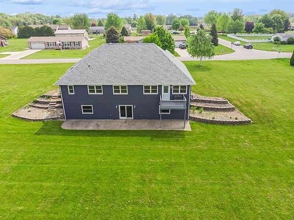 This 2005 custom built home located on 2 beautiful acres in the heart of the coveted New Prairie United School District, just on the outskirts of town, is calling you home. You will be impressed by the more than 3400 square feet of living space over two levels tucked beyond the handsome facade. An east facing covered front porch greets you and perfect for morning coffee. The welcoming foyer leads to a command center kitchen with bay windowed breakfast room and 12 foot breakfast bar overlooking the living & dining rooms, the back deck perfect for grilling and a west facing rear yard that does not quit and where beautiful sunsets play 365 days a year. The main level is complete with a generous primary suite with spa bath & big walk in closet, two additional bedrooms, hall bath and laundry/mud room leading from the attached two car garage. The walkout lower level is bathed in light with loads of windows and two glass doors leading to a big concrete patio and features a 4th bedroom with en suite bathroom, big recreation room, a second kitchen, a second laundry and a flex space that works as office or exercise room. To seal the deal, there is the stand alone 40 x 30 pole barn/garage for each and every hobby you enjoy. Although only 20 years old, the meticulous owner in the last few years has already replaced the roof, windows & siding a new owner will enjoy for decades to come. Not one to sleep on if you ever want sleep here!