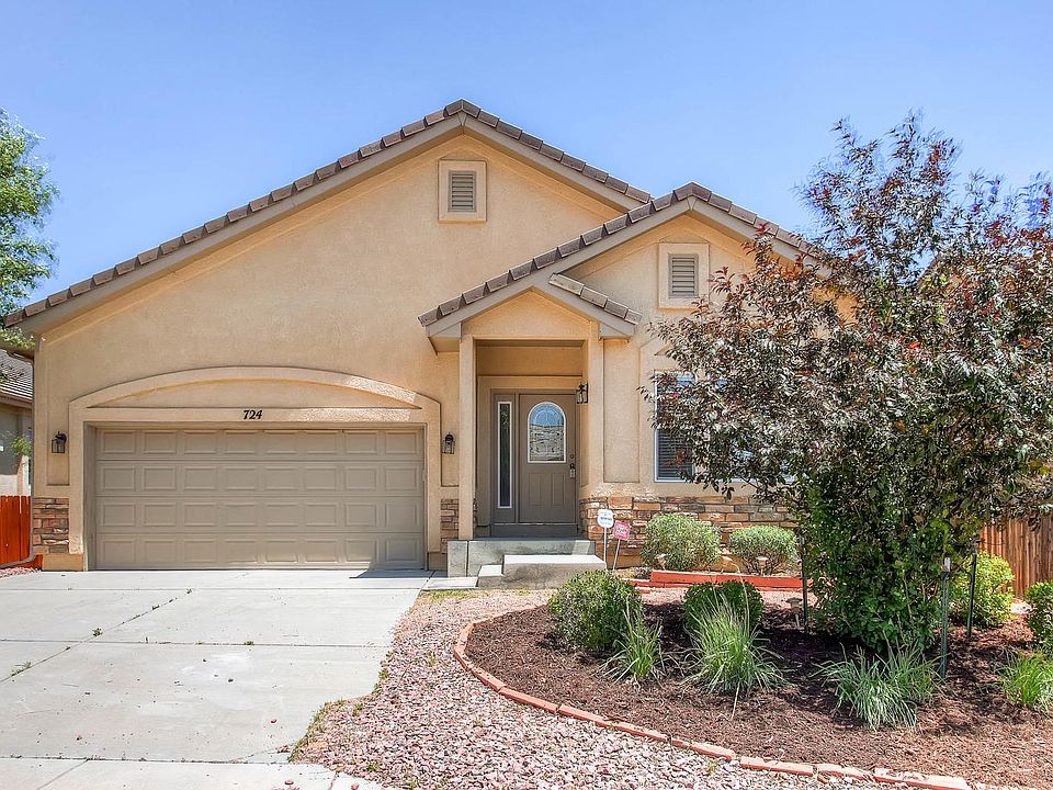 Warm and inviting ranch style home built in 2005, offers style and affordability with the ultimate in comfort and convenience, located just minutes from Parks, Schools, Shopping, Dining, Fort Carson & Peterson Air Force Base! Upon arrival you are greeted by a covered porch surrounded by a xeriscaped front yard. Step inside and the entry greets you with tile floors, vaulted ceiling, neutral colors and a bright and open floor plan, opening to a large living room. The living room is open to the walk-out dining and kitchen which boasts ample cabinet space, breakfast bar, tile floors, GE stainless steel appliances, Silestone counter-tops, vaulted ceiling and large pantry. The walk-out dining room takes you out to a private deck perfect for your morning cup of coffee or enjoying the sunrise. Down the hall is the private Master Suite with walk-out to private deck overlooking the lower large concrete patio and fully fenced backyard. Back inside the master suite provides a double-sided fireplace and adjoined 5-piece bath with tile floors, dual vanities, stand-alone shower, soaking tub and large walk-in closet. As you continue on the main level you will find 2 additional bedrooms with a shared jack-and-jill bath and half bath. The finished walkout basement boasts a large family room with 9’ ceilings and ample room for a gaming table, workout area and seating, 1/2 bath, large bedroom with adjoining full bath and multiple storage areas, perfect for all of your family’s needs. Additionally, there is easy access to Fountain Creek Regional Park, I-25, Powers, Colorado Springs Airport, all Military Installations, Shopping, Dining and more! This is more than a house, it’s a home; where dreams are fulfilled and memories are made! Please visit www.laurakaan.com for more information on this dream home.