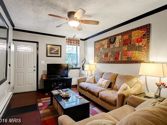 Remarkable Historic Fells Point Location - steps from it all! With over 2000 square feet, this 16'' wide 3-story property features hardwoods, main level bath, stainless steel appliances, 4 bedrooms (one pass thru), large roof-deck, crown molding, W/D room, renovated bathrooms, ceiling fans, great main lvl storage room, pellet stove for additional heat source, true dining room area and much more!