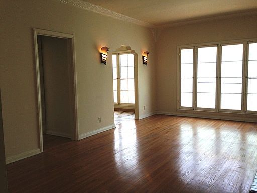 Half Month Free! Exquisite 1931 Architectural Classic Art Deco building. Top floor unit w/ Den. Steps to LACMA and LA Fitness.- Exquisite 1931 Architectural Classic Art Deco building. - Available for move-in on or June 22nd.- Free half month rent with a one year lease 724 S Genesee Ave. Unit #7. Los Angeles (90036). Three blocks east of Fairfax Avenue and just South of Wilshire Blvd. Minutes to WeHo, Beverly Hills and The Grove. Steps to the Los Angeles County Museum of Art and LA Fitness. - Rich Art Deco architectural details in every room.- Large top floor corner unit with one bedroom, one bathroom plus a Den. Only one wall shared with neighbors, windows in all other walls!- Original art deco flooring in entry and dining area. - Gorgeous original crown moldings and hardwood floors throughout.- Large and open living room comes with ceiling to floor windows and a Faux fireplace.- Spacious bedroom will easily fit a California king size bed, dresser and chair.- Walk-in closets with built-in dressers in bedroom and in hallway, plus 1 more coat closet in hallway.- Bathroom comes with original tiles, pedestal sink and separate bathtub and shower stall.- The spacious Galley style kitchen comes with bright window above the sink, tiled counter-tops, a gas range and a dishwasher.- Formal dining room with original tile floors, and ceiling to floor windows.- Secured intercom building.- One underground gated parking space.- Laundry facilities onsite.- Landlord pays for gardening services, water and heating of the water.- Indoor cats are welcome. Sorry, no dogs.- Call Roger at 310-299-6302 for showings.