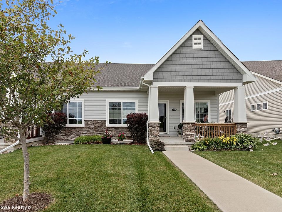 Simple living Beautiful 3 BR, 3 BA townhome with spacious open concept & large covered front patio - perfect for summer evenings Huge living area double tray ceiling & stone gas fireplace TV connection, transom windows for natural light. Plenty of prep space in the kit granite counter, breakfast bar, SS appliances (all stay, & tile backsplash. Dining space allows ample room for your dining set. A main floor guest room could function as an office, & a full guest bath is conveniently located. The master suite tray ceiling & large walk-in closet is complete a private bath - double sinks & step-in shower glass door. Finished lower level has 9ft ceilings & features an entertainment room or hobby space, as well as a 3rd BR & 3/4 BA. TONS of storage space too And let's not forget the amenities included: snow removal, lawn care, irrigation, ext home maintenance, clubhouse & pool Home sweet home is waiting (And some tax abatement remaining