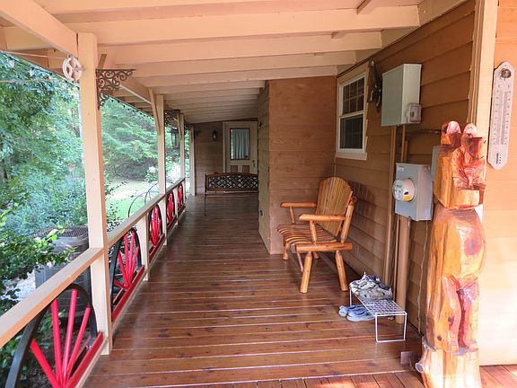 A buyer's realty broker commission will be considered. Smoke-free, 2-story country charm with a creek in the Nantahala National Forest; large porch on front and on one side overlooking street at lower elevation; well landscaped; detached 2-car garage and large storeroom; 6-person hot tub; detached storage shed.