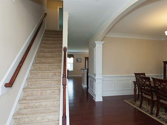 Only two years old. Offers more upgrades and better location than new construction. .74 acre cup-de-sac lot. Upgrades include: birch cabinets, stone porch, 3rd garage, 3rd floor bonus room, 2 additional full baths, downstairs on-suite. granite, stainless appliances, brush nickel fixtures, ceiling fans and trey ceilings. Refrigerator included. Thirteen year limited warranty transfers to new owner. Community pool.