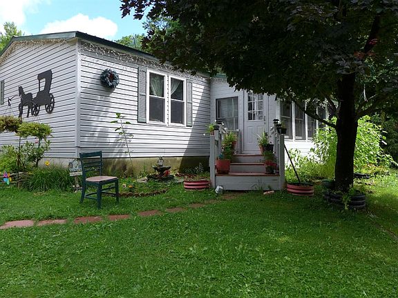 This extensively modified ranch home is in well-kept, turn-key condition, with sun room added in front and family room in back, both with new decks. Custom wood paneling, newer double pane windows, aluminum roof, full basement and more. New luxury vinyl flooring and carpet. Aluminum 3+ car carport. The house is set back in a landscaped yard with fruit trees, planted pines, gardens and abundant wildlife.