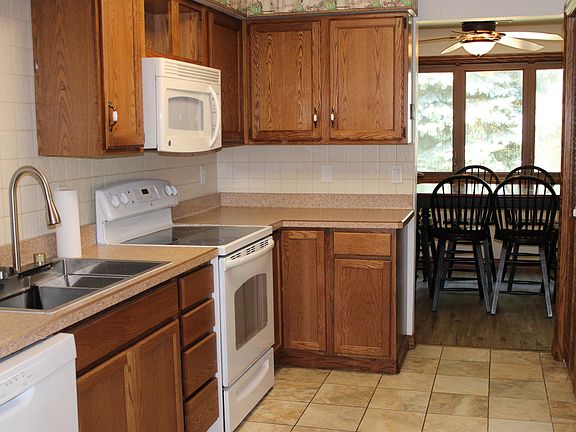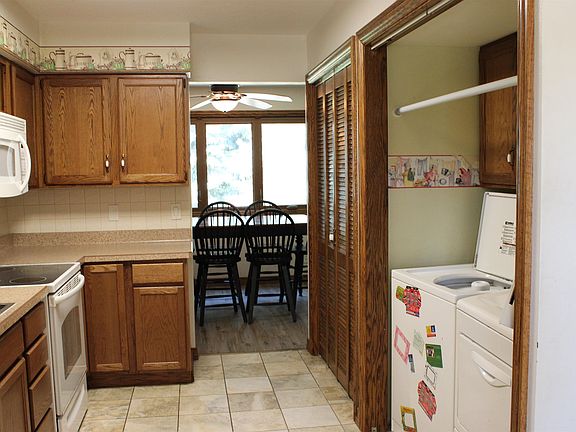 Beautifully maintained and freshly painted ranch style condo offering over 1,400 sq ft of comfortable living space. Main floor features a large living room with fireplace, dining area, updated half bath, and convenient main floor laundry. Kitchen includes all appliances and opens to a private back patio through sliding glass doors. Upstairs you'll find two generous bedrooms and a fully updated full bath. No basement. Attached 2.5-car garage provides plenty of parking and storage. HOA fees $150/month. Rentals not permitted. Pets allowed up to 30 lbs.