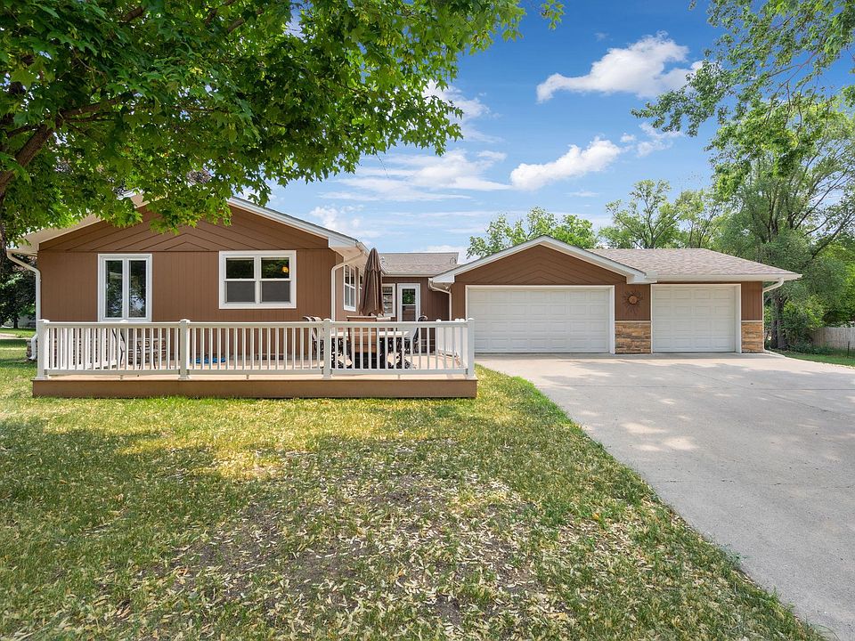 Come see this beautiful corner lot in Monticello! This 4 bed, 2 bath home has a spacious 3 car garage with a large concrete driveway. This home has been well maintained with updated bathrooms, windows and mechanicals, maintenance free decking and more. Recent basement remodel with all new carpet, paint and bathroom. Close to downtown Monticello and I-94.