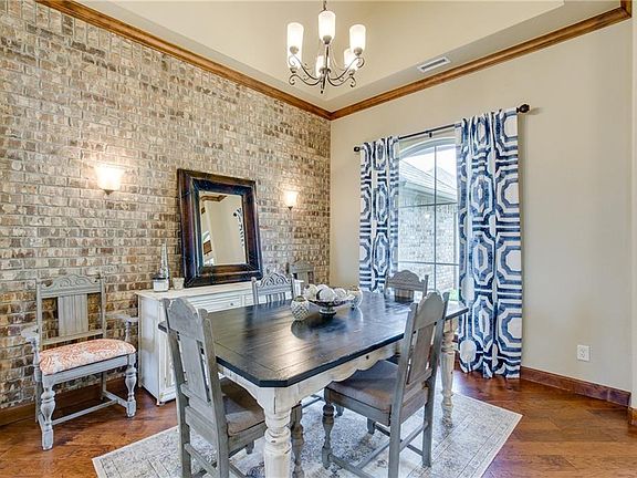 You are going to LOVE living in Belmont Farms! The perfect mix of formal + casual, you'll love relaxing + entertaining in this beautiful brick tudor-inspired home filled with natural light. Your guests will love hanging out in the eat-in kitchen with plenty of space to move around. Having a seat in the large, open dining room, they'll compliment the stunning high ceilings + exposed brick! Hang out by the floor-to-ceiling dry stacked stone gas fireplace while the kids play in their rooms - then get them ready for bed in their jack-n-jill bath. Plenty of space for guests to stay over, while you retreat to the huge master suite for some self-care time in the big whirlpool soaking tub. Move in and enjoy...the exterior has been recently updated with a new impact resistant roof, gutters + exterior paint, and the sprinkler system keeps the lawn looking gorgeous. Welcome home to one of North Edmond's most coveted neighborhoods!