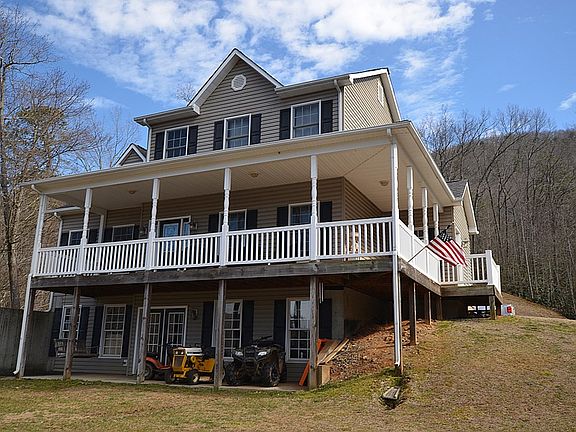 This is a great two-story home located just North of Stuart. The main living spaces including the master suite and laundry area are on the main level. The three-bedroom, 2 bath home is sitting in a very private setting with a view from the front porch of the surrounding mountains. The open floor plan from the kitchen to the living area is great for entertaining. The living features a stone fireplace w/ gas logs. There is a large formal dining room too. The master suite has its own private bath with a separate shower and jetted tub. Level two of the home has two bedrooms, a full bath, & a bonus room that could be finished for another bedroom or kid's playroom. The full basement is partially finished with rough-cut hemlock boards, a bar and is plumbed for a bath. There is also a pond.