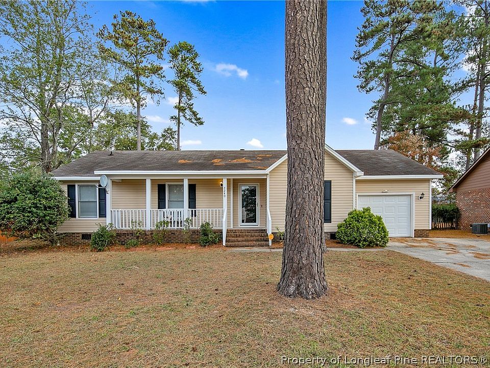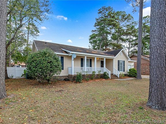 Welcome home to a fresh space that checks all the boxes! This one story home features 3 great sized bedrooms and 2 full bathrooms. Formal dining area leads into a stylish kitchen and eating area. Enjoy time in your vaulted ceiling living area next to a beautiful white brick fireplace. A short drive from Fort Bragg, this home is located very close to shopping and eateries. Spacious backyard with a privacy fence. Storage building in backyard included. Will not last long!
