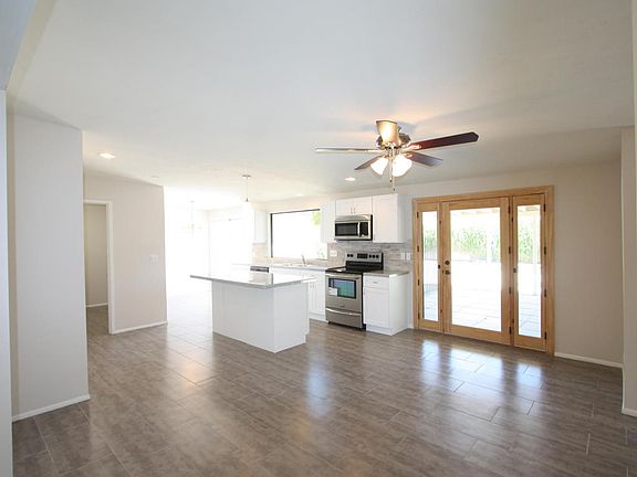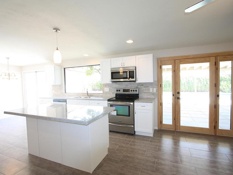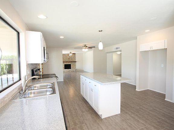 Wow! Incredibly remodeled ranch home mixes style and function; open kitchen with new white cabs, ss appliances, granite counters incl island, contemporary tile flooring and carpet in bedrooms, new tile work in baths, nice and bright! Stackstone fp in family room. The backyard includes pool with slide, and huge covered patio! Bonus large workshop/storage room. MOVE IN READY!