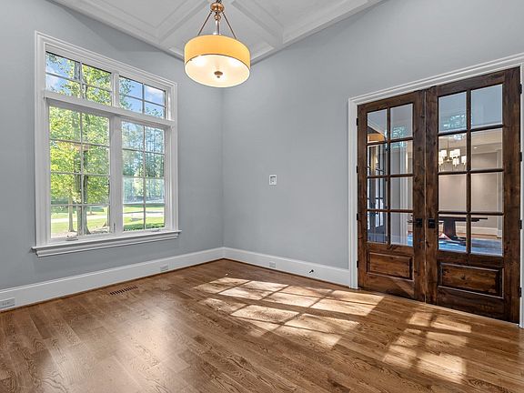 Brick and stone front home situated on a private wooded golf lot! Provides excellent views of the 6th hole of the Hasentree Golf Course! Expansive stone paver patio equipped w/salt-water hot tub, grill & firepit, making it an ideal outdoor oasis for relaxation and entertainment. The centerpiece of the home is its dream kitchen w/10' island, gas cooktop & top-of-the-line Thermador appliances. Also included is a breakfast nk, & spacious walk-in pantry. Butler's pantry w/wine fridge. The kitchen opens to the bright family room w/ceiling beam, vaulted ceiling & stone surround fireplace. The owner's retreat on the main floor offers view of the golf course. The owner's bath is equally impressive, with a freestanding tub, 2 separate vanities, a large shower, & spacious closet that includes a washer & dryer! The functional layout has a 1st-floor guest suite, which could also be used as an office. The 2nd-floor offers hallway w/hwds, 3 bdms, bonus rm, Juliet balcony & full 2nd laundry. 3rd floor walk-up w/ample storage. 3-car gar w/epoxy floors. Whether you are inside or out, this home showcases its quality & craftsmanship!