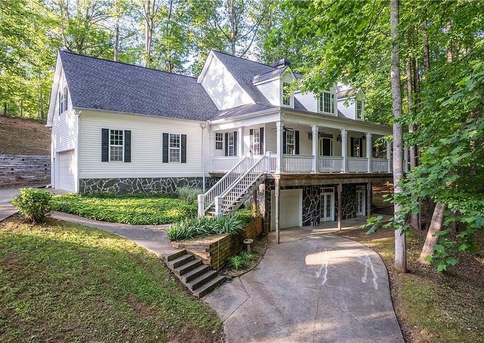 Move-in ready craftsman-style home on over 2 picturesque acres with a charming creek in the front yard! Relax and unwind on the expansive rocking chair front porch, perfect for enjoying peaceful mornings or evening sunsets. Inside, you'll find beautifully refinished hardwood floors, brand-new carpet throughout and fresh interior paint, creating a fresh and inviting atmosphere. This 4-bedroom home features 2 full baths and 2 half baths, offering comfort and convenience for the whole family. The gourmet kitchen is a chef's dream, equipped with high-end stainless steel appliances and elegant granite countertops. Located in a top-rated school district, this home also boasts a massive unfinished basement with a garage door-ideal for storing your recreational gear, tools, or creating your dream workshop or extra living space. This home is a must see!