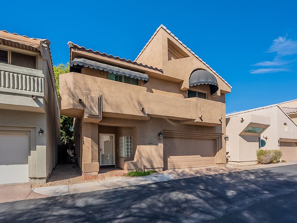 Nestled in a desirable location near in Legends at Dreamy Draw, this home is perfect for those seeking convenience and comfort. This gated single-family residence offers an impressive 2200 square feet of living space, providing ample room for comfort and relaxation. As you step inside, you're greeted by high ceilings in the spacious living room, creating an open and airy atmosphere that opens to your own private patio, perfect for entertaining. A large beautiful kitchen, equipped with all appliances, granite countertops, abundant cabinet space & dining space. Upstairs, you'll find the laundry room, a full bathroom and three generously sized bedrooms, each with their own patio, offering a cozy retreat for relaxation. Large primary bedroom with an ensuite bathroom featuring a double vanity, spa-like bathtub,walk-in shower and a huge walk-in closet. The location of this home is truly exceptional - within close proximity to a range of amenities, including shopping centers, restaurants, and parks. Don't miss the opportunity to make this gorgeous residence yours!