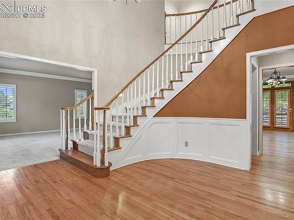 This home has so much to offer but needs your TLC & your personal remodel. Priced right for the condition & we even have a inspection report to share with you. The quality & craftsmanship of this 4 bedrooms, 4 bath, boasting over 4,500 SF that is ready for your personal touch in School District 20. Nestled on almost a 1/2 acre in a serene setting. Enter through the grandiose rounded architectural staircase to be greeted by soaring vaulted ceilings and plantation shutters, drenching the space in natural light. Entertain guests in style in the expansive formal living and dining spaces, perfect for hosting lavish gatherings. The formal dining has a butler's pantry and double doors. Continue into the home and enter into the huge eat in kitchen, a gas brick two-sided fireplace & walk out to the deck. The kitchen has a great layout, tons of cabinets and countertops offering endless possibilities for customization. Step outside onto the spacious deck to bask in the beauty of nature. Sharing the 2-sided fireplace is the cozy family room. Big laundry room with a 1/2 bath complete the main level of this wonderful home. The primary suite has architectural detail w/ a rounded wall and big 5-piece ensuite and walk in closet making this a retreat after a long day. Two more bedrooms & nice sized full bath. This home features a large, open lower level for fun and entertainment. Bring your pool table making this a recreational/family room. One more large bedroom and bath. Unfinished storage area where you could add another bath and bedroom. Outside enjoy the large deck w/ a gathering area and firepit. This home has incredible potential to be transformed into a true dream home in the sought after Hunters Point in Rockrimmon neighborhood. if you want a great opportunity, you just found it! Bring your dreams and creativity and make this home your own!